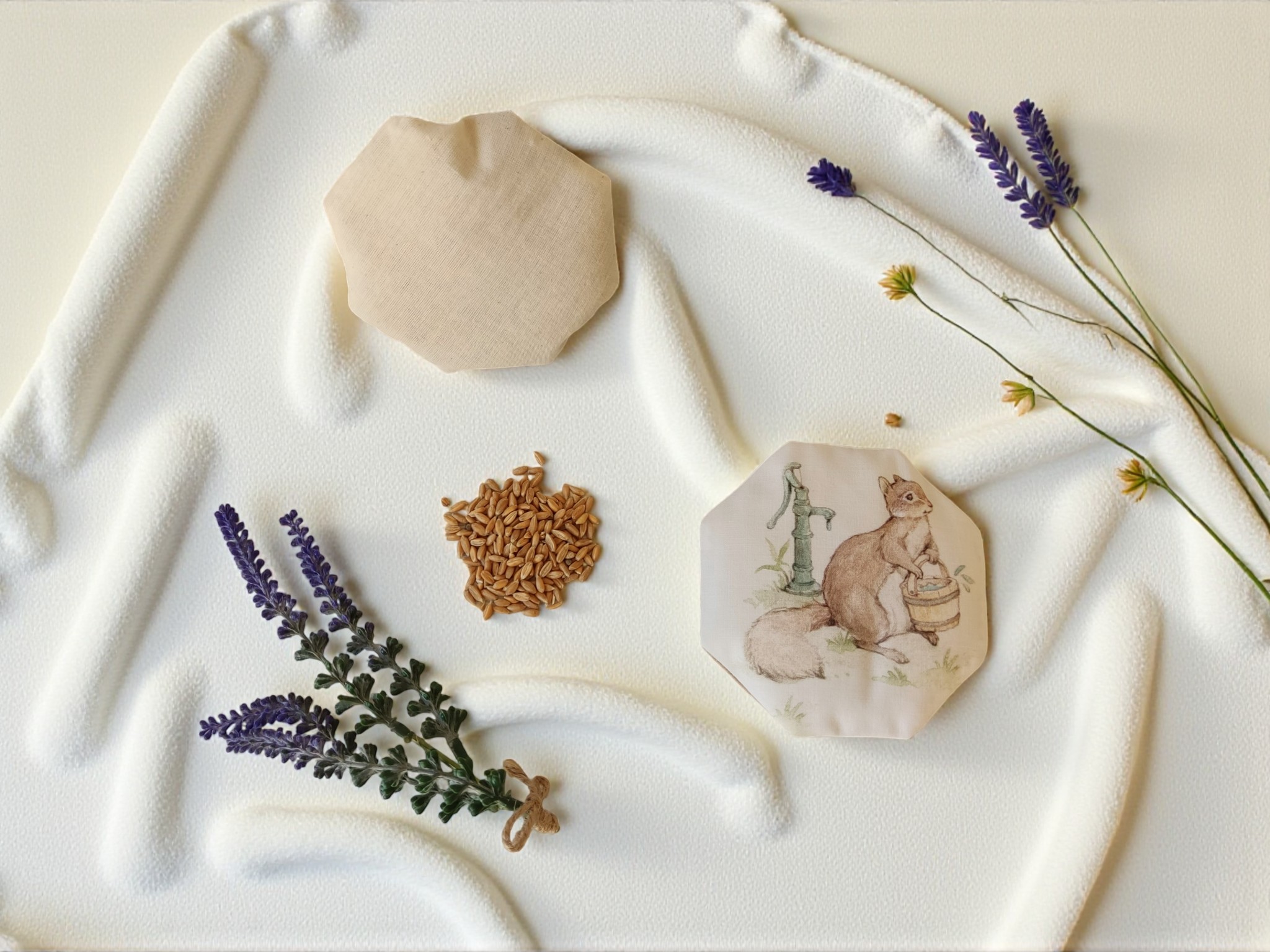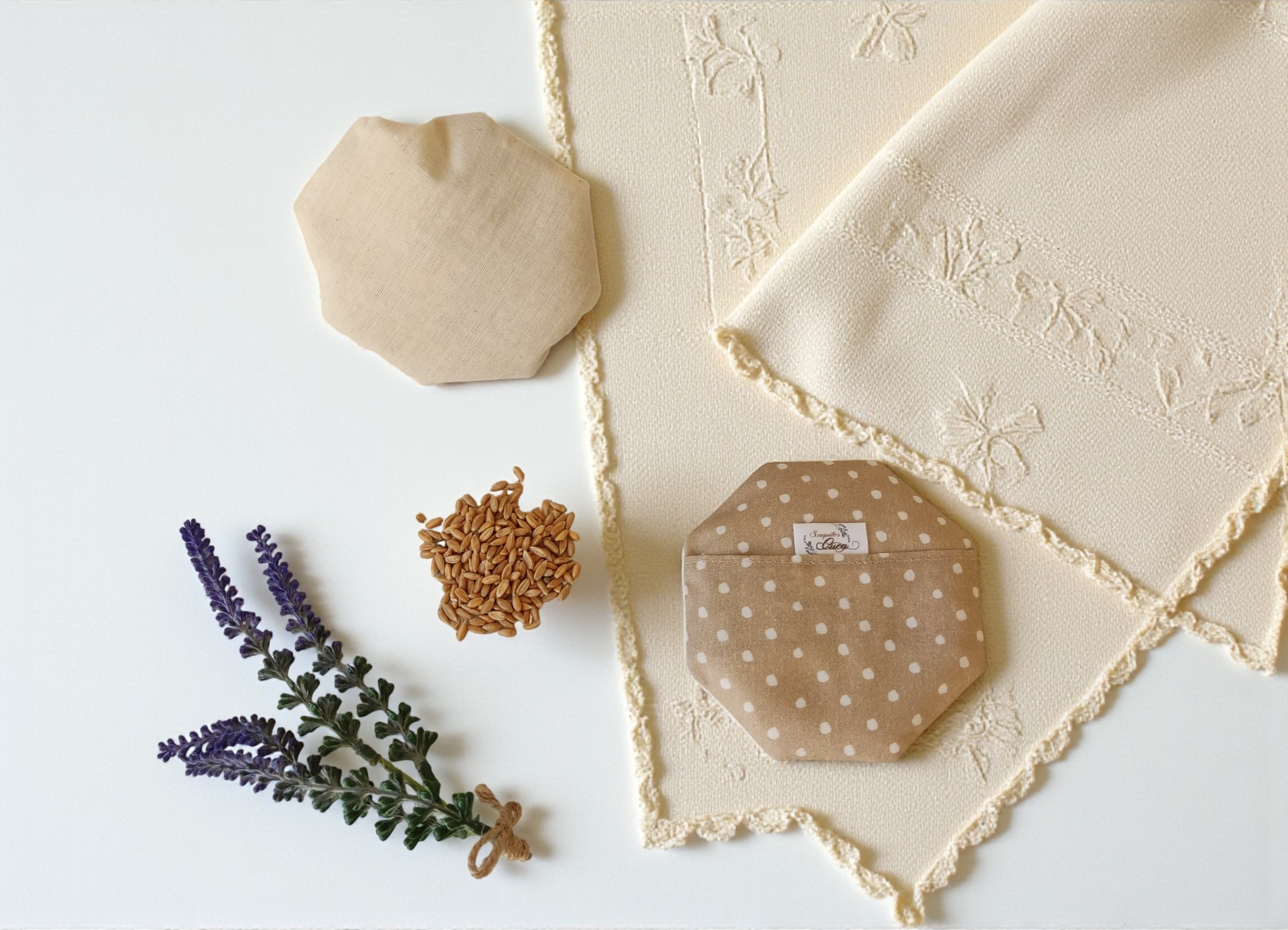 Contienen semillas de espeta, que absorben rápidamente el calor y lo desprenden de forma gradual, y granos de lavanda que facilitan la relajación