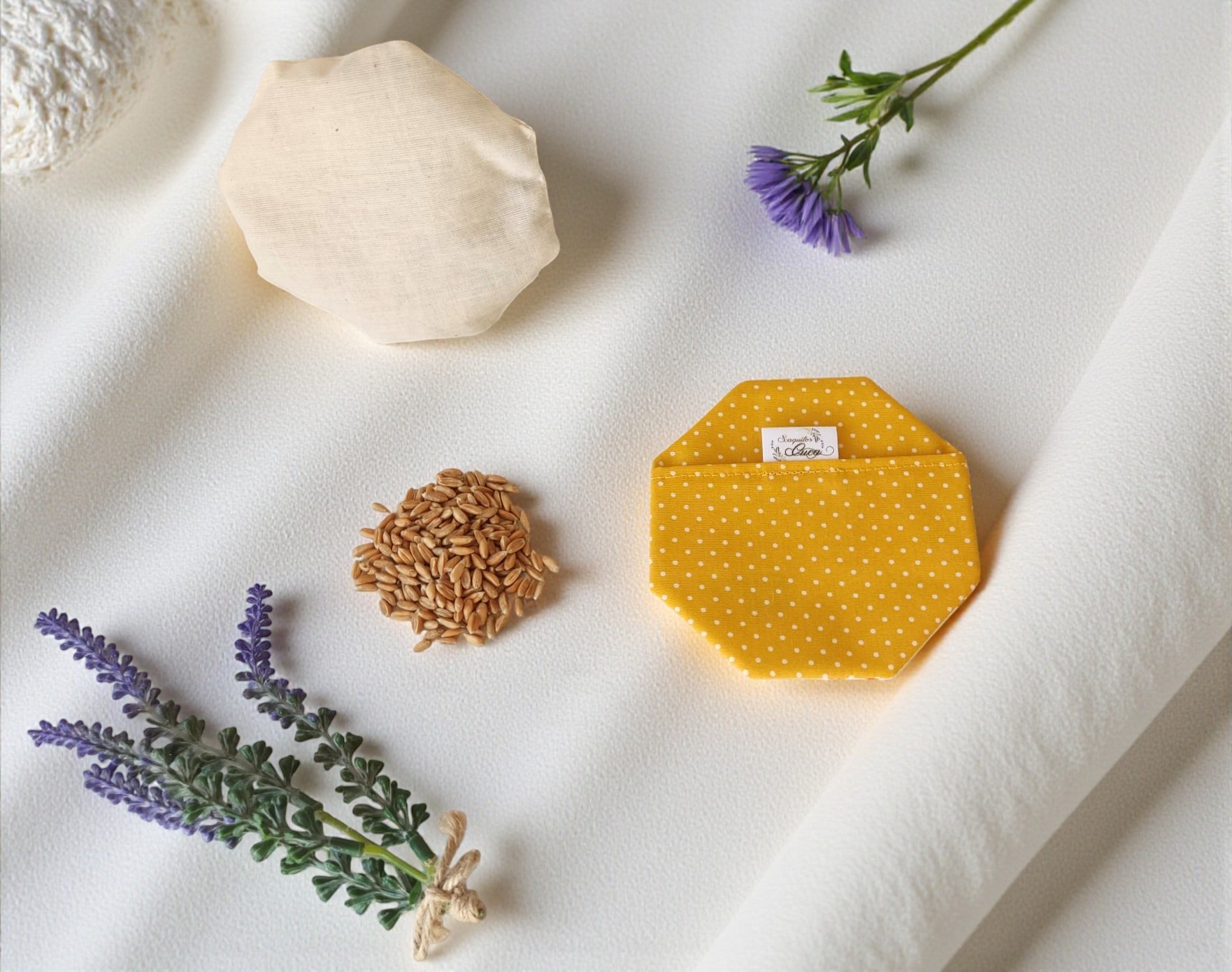 Contienen semillas de espeta, que absorben rápidamente el calor y lo desprenden de forma gradual, y granos de lavanda que facilitan la relajación