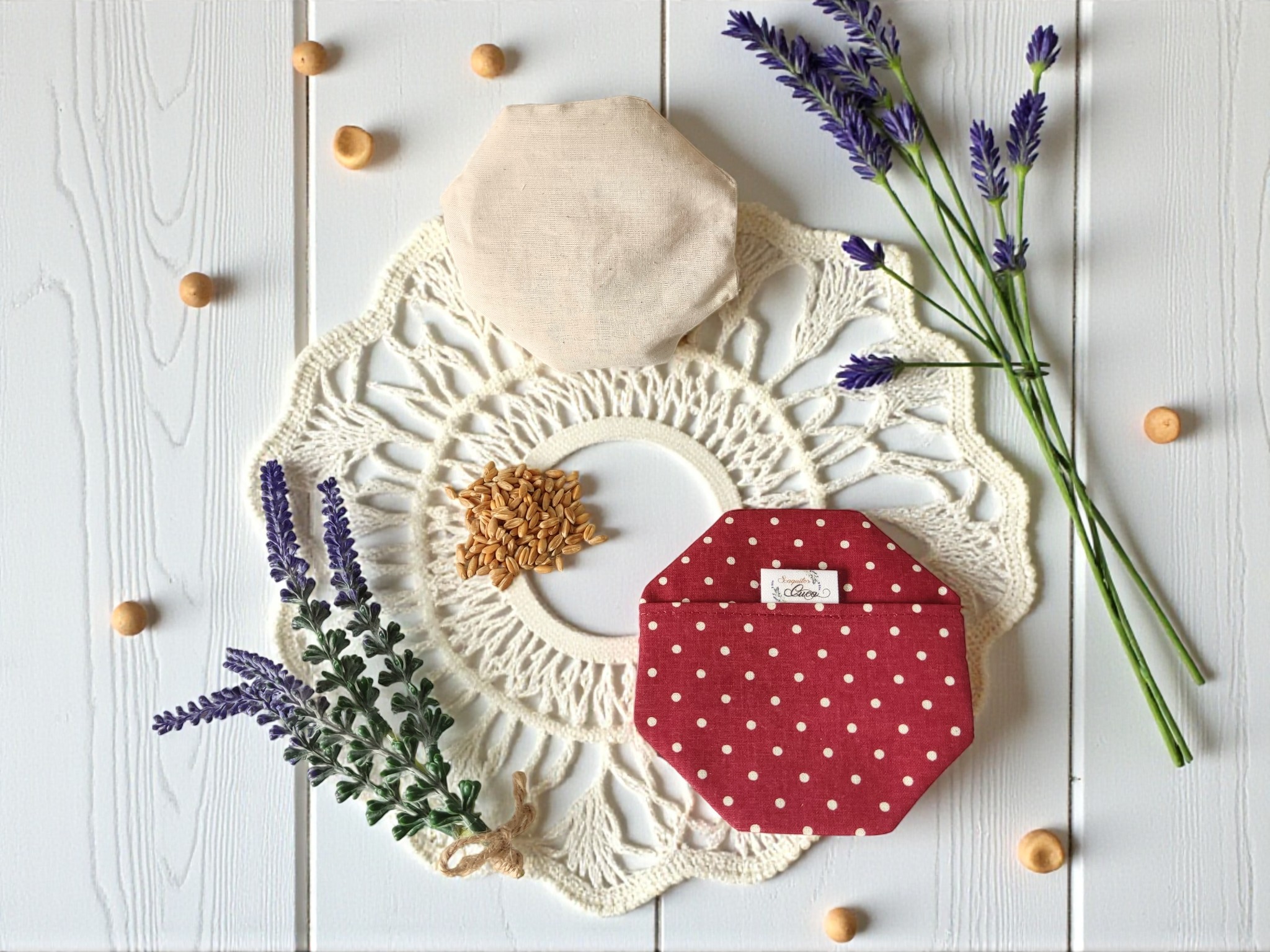 Contienen semillas de espeta, que absorben rápidamente el calor y lo desprenden de forma gradual, y granos de lavanda que facilitan la relajación