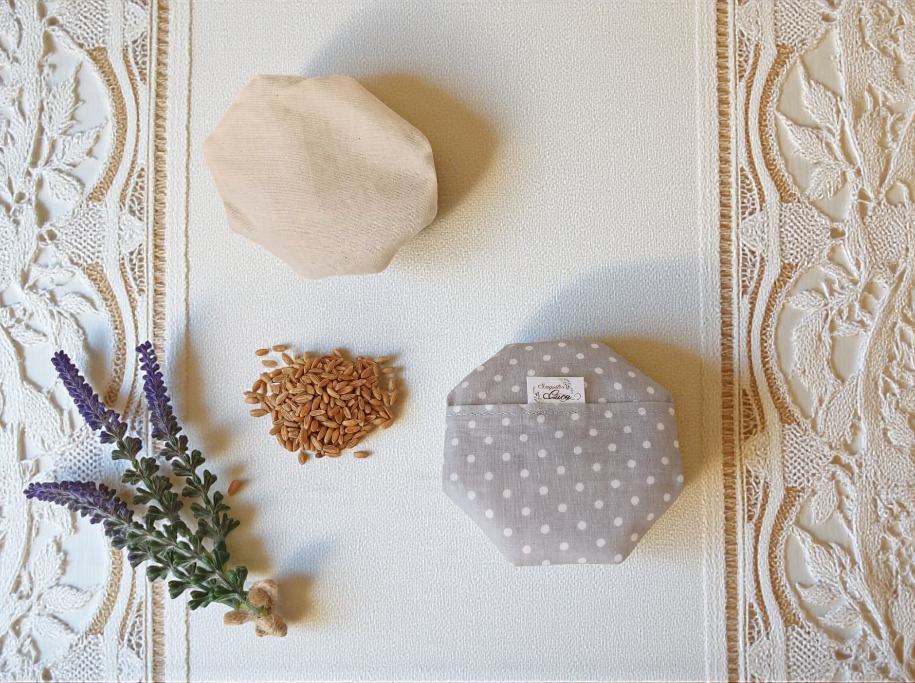 Contienen semillas de espeta, que absorben rápidamente el calor y lo desprenden de forma gradual, y granos de lavanda que facilitan la relajación