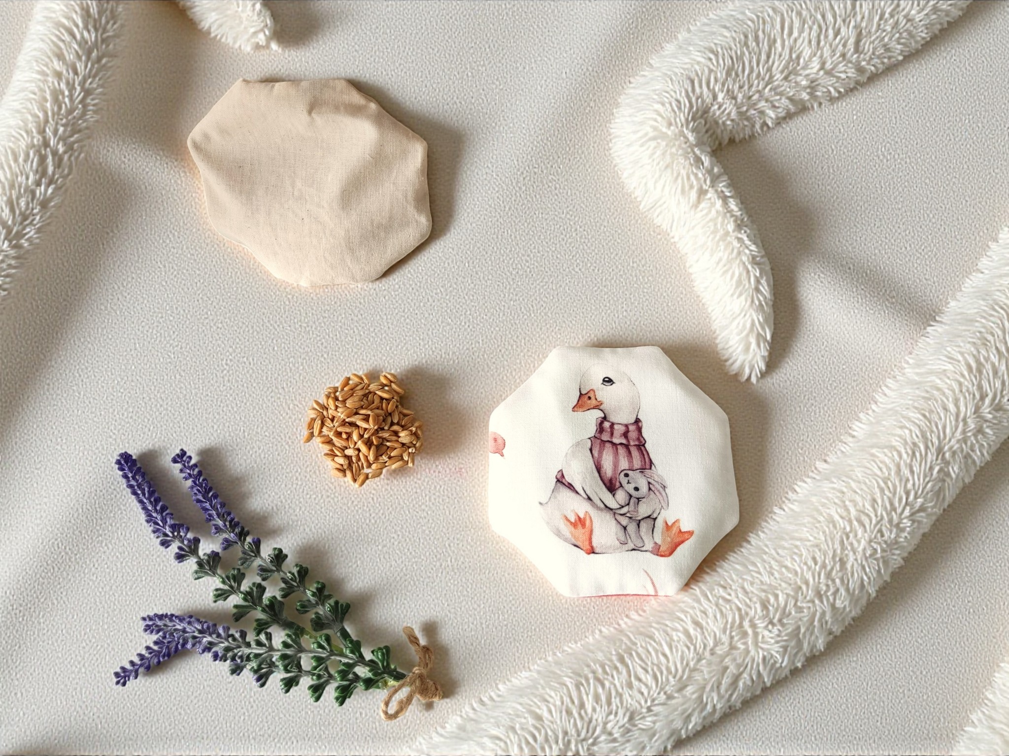 Contienen semillas de espeta, que absorben rápidamente el calor y lo desprenden de forma gradual, y granos de lavanda que facilitan la relajación