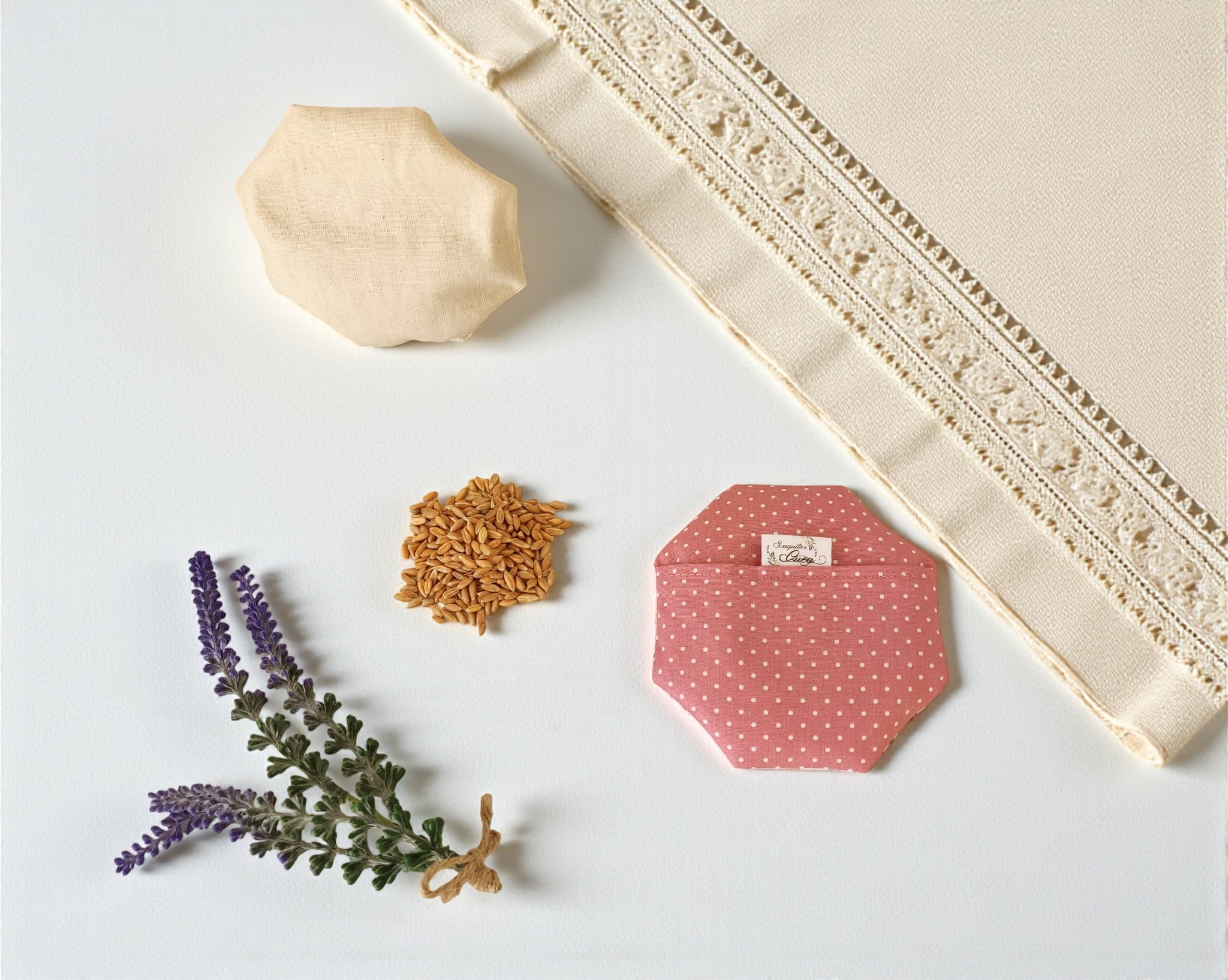 Contienen semillas de espeta, que absorben rápidamente el calor y lo desprenden de forma gradual, y granos de lavanda que facilitan la relajación